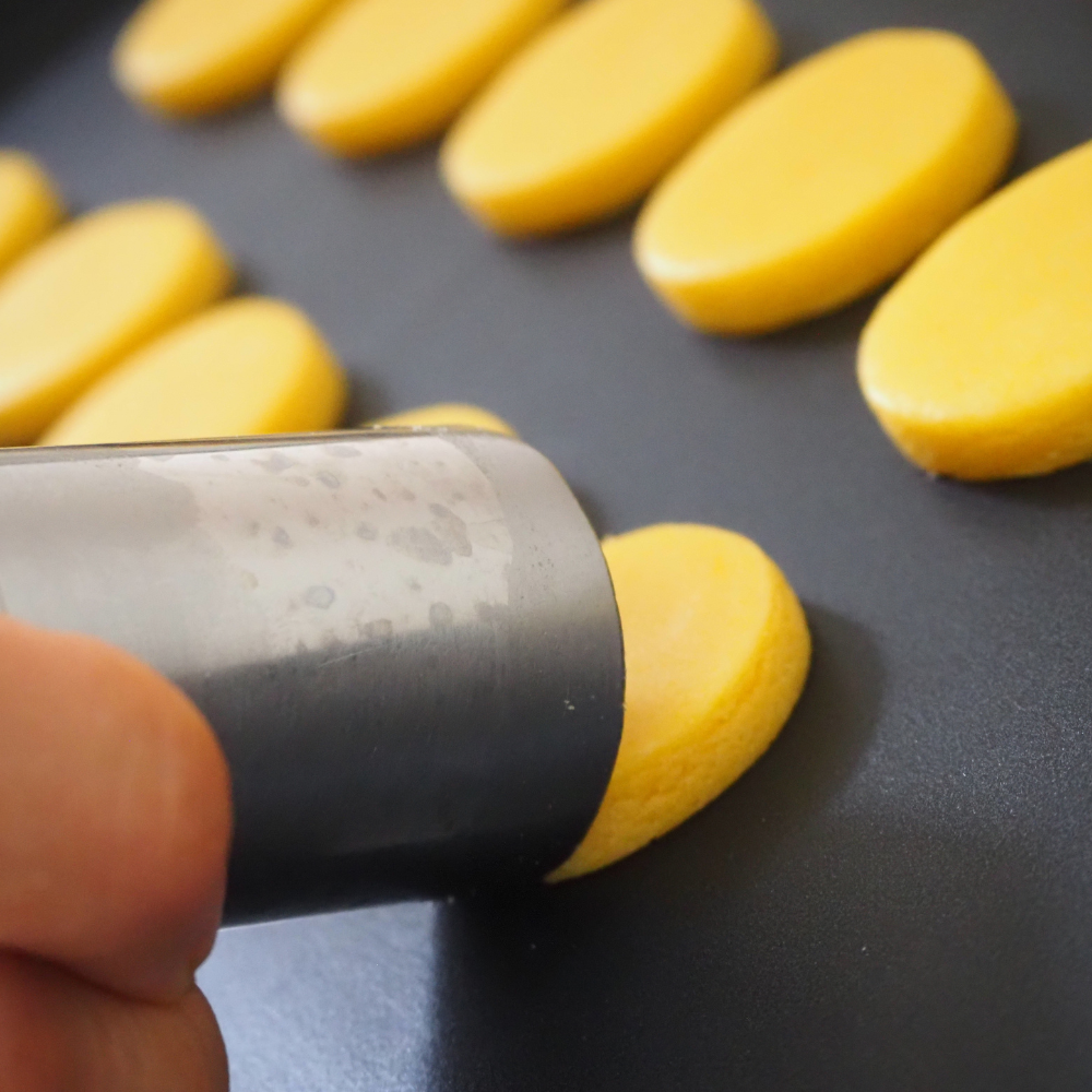 ・カボチャフレーバーの黄色いサトナカが満月のように見える